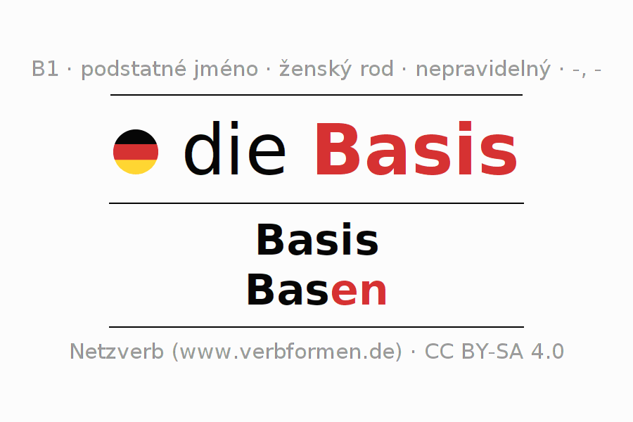 - Singulár: die Basis, der Basis, der Basis, die Basis