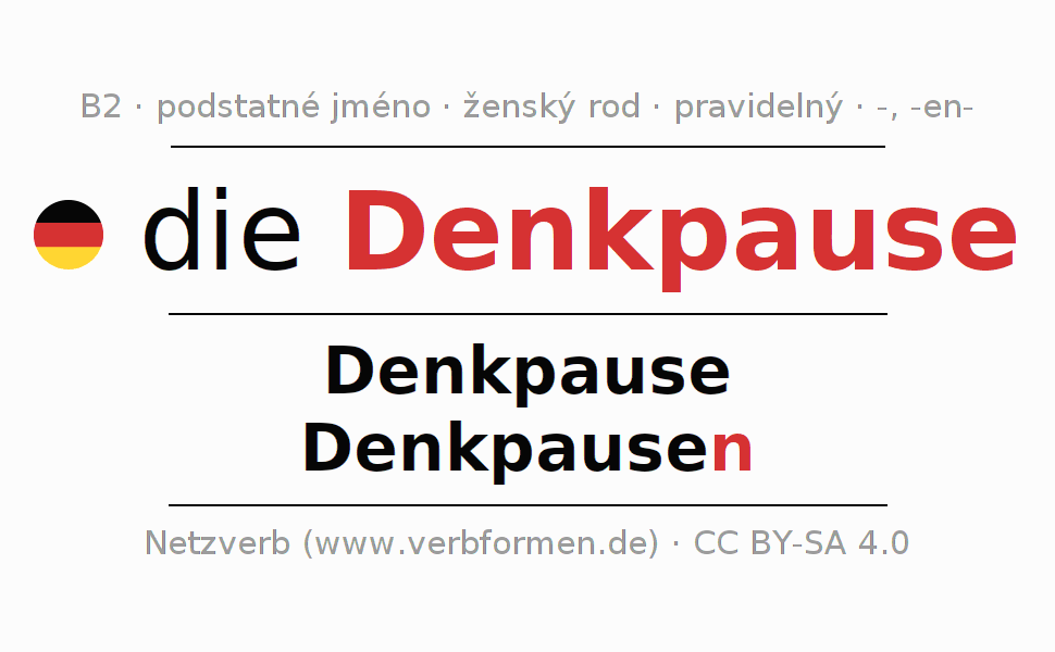 - Singulár: die Denkpause, der Denkpause, der Denkpause, die Denkpause